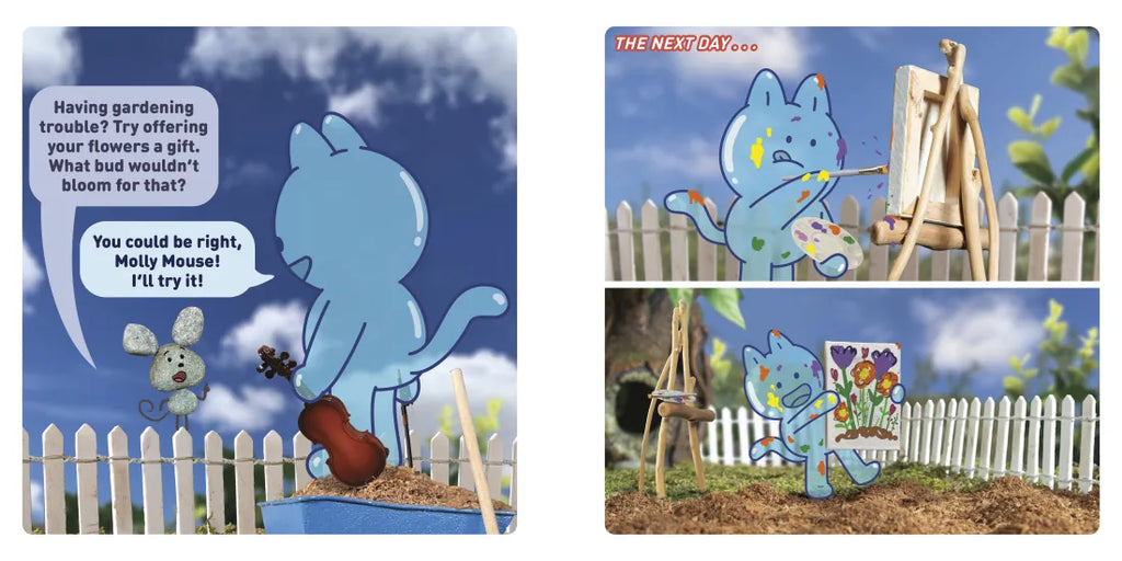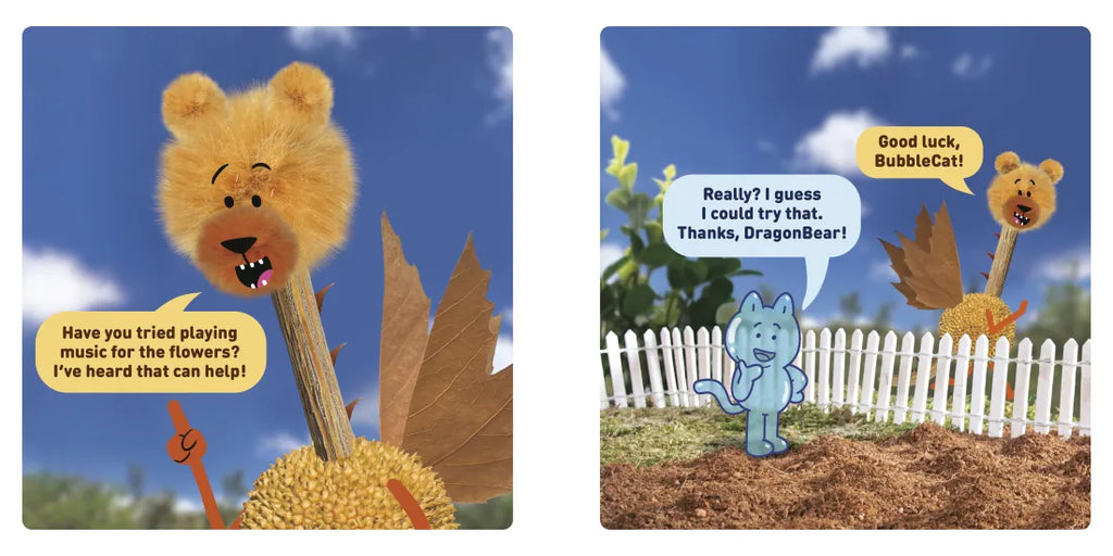BubbleCat may be made out of a bubble, but that doesn't stop him from growing his own garden! Only, after he plants all his flowers, none of them start to bloom. Ah, bubbles! At the advice of his friends, BubbleCat tries everything he can think of to help them grow – even playing the flowers an encouraging song! – but it may be that the simplest act is all he needs...