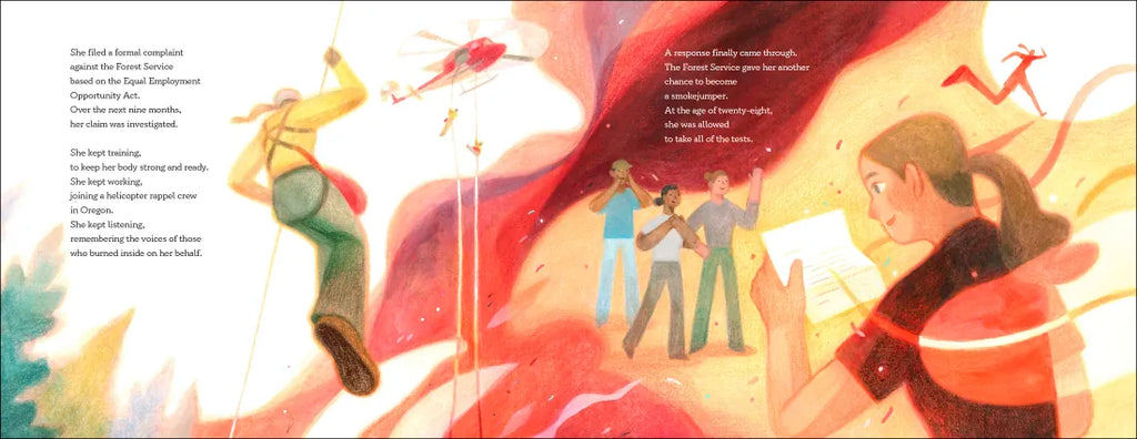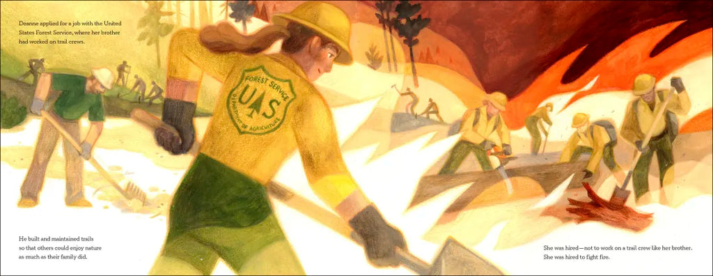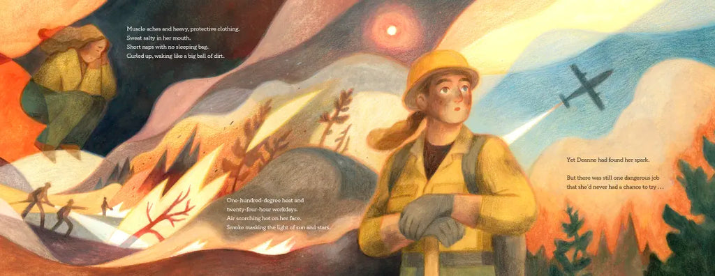 With her family, she spent summers sailing the Salton Sea and backpacking the Sierra Nevada Mountains. As she grew older, her love of nature only grew. So when the heat rose each fire season and the blazes burned near and far, she noticed. Deanne knew she had to do her part in fighting the fires. She spent years on woodland crews, clearing brush and branches that could make the fire spread, and on hotshot crews where she fought faster fires and took bigger risks, spending weeks in one-hundred-degree heat working twenty-four-hour shifts. But what Deanne really wanted was to be a smokejumper, to jump from planes and parachute into dangerous wildfires that no truck could ever reach. To be the first line of defense. The only problem? There had never been a female smokejumper before.