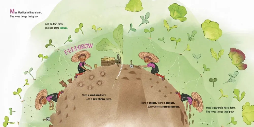 In this female-forward spin on the traditional children's song "Old MacDonald", readers can join Miss MacDonald on her vegetable farm and see all the work that goes into growing healthy and delicious produce.