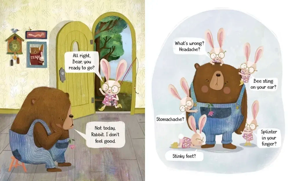 Rabbit is SO excited to go fishing with Bear. But Bear's not feeling up to it. . . . He’s feeling low, like his pocket is full of sads that are weighing him down. Although Bear doesn’t know why he’s feeling this way, Rabbit is sure she can fix it!