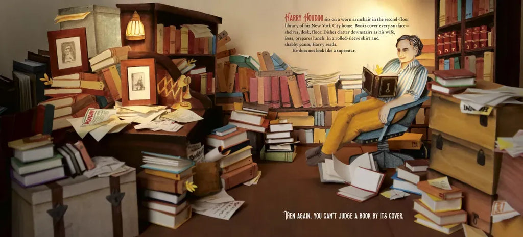 Houdini is the world's most beloved magician, and he became famous for all of the amazing tricks he accomplished. Houdini knew just how to captivate his audience, whether it was leaping from a bridge or freeing himself from a straitjacket. But in true magician's fashion, he kept a secret so great that not many people knew about, and that was his love for books!