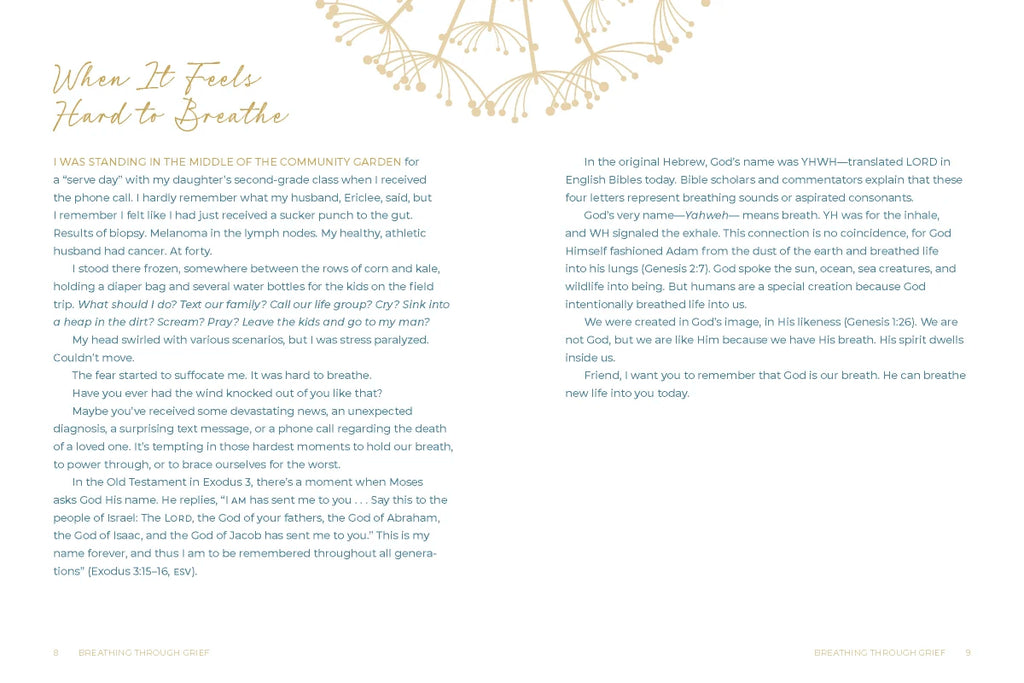 If you or someone close to you is walking through loss, let the comforting words in Breathing Through Grief encourage you with the knowledge that you are not alone and bring you a semblance of peace as you continue forward on the road to healing.