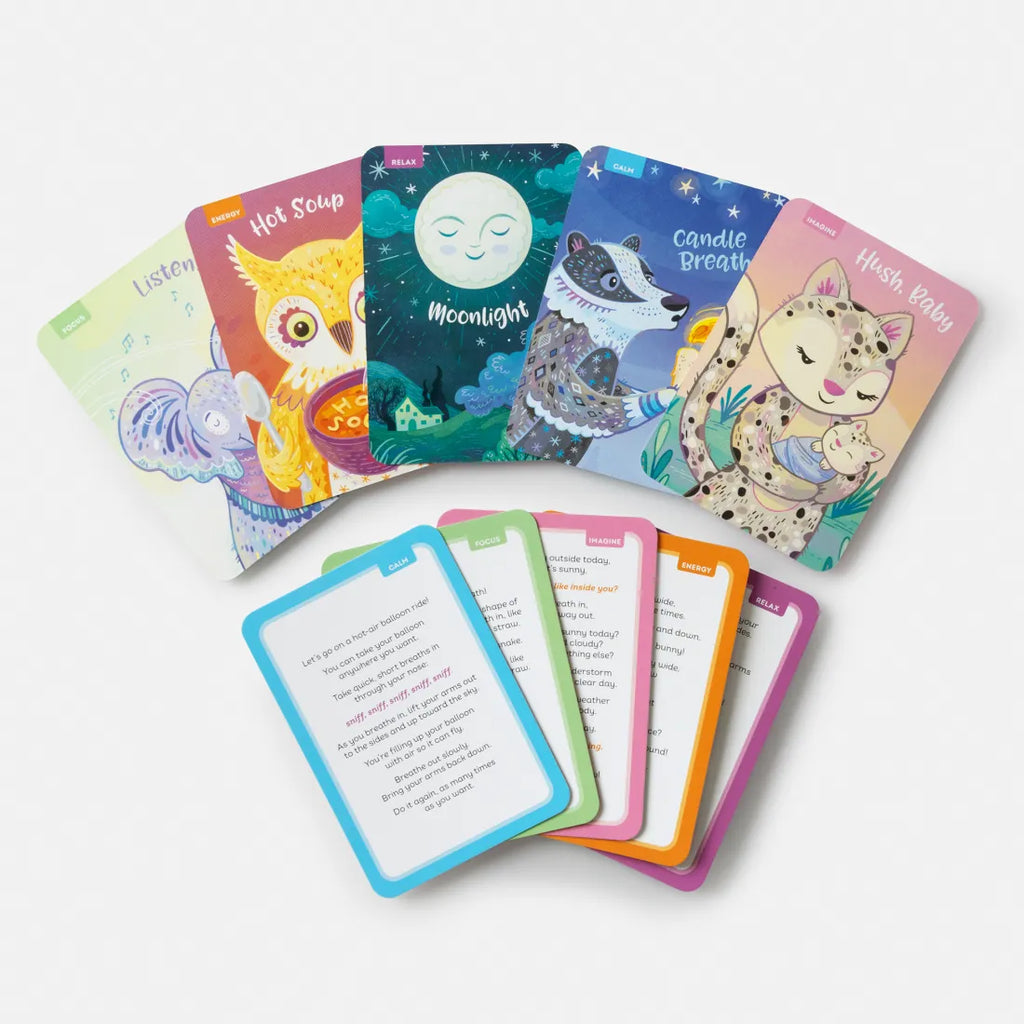 Following a mindfulness practice has been proven to provide children with all kinds of benefits, but how do you teach them mindfulness? Pop open the box, grab a card, follow the instructions, and find yourself having fun, being in the moment, and building a mindfulness practice for the future. The fifty activities in the Breathe Like a Bear Mindfulness Deck emphasize focusing, becoming calm, imagination, getting energized, or relaxing. And the way you do it is fun and creative: