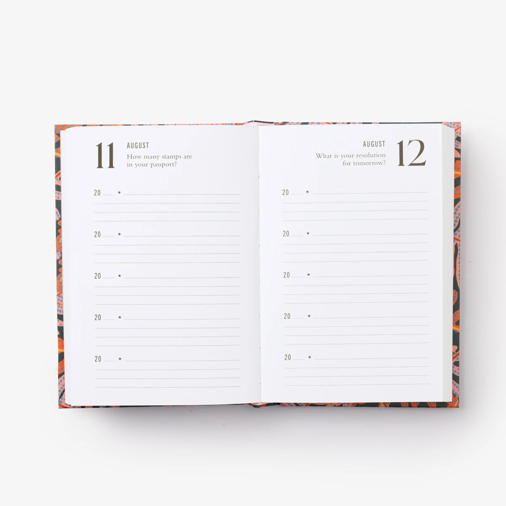 Featuring gorgeous patterns, this journal offers a simple way to capture daily thoughts and turn them into a precious time capsule of the next five years. Turn to the day’s date and respond to the writing prompt. Then see how your answers change year after year. Questions include: