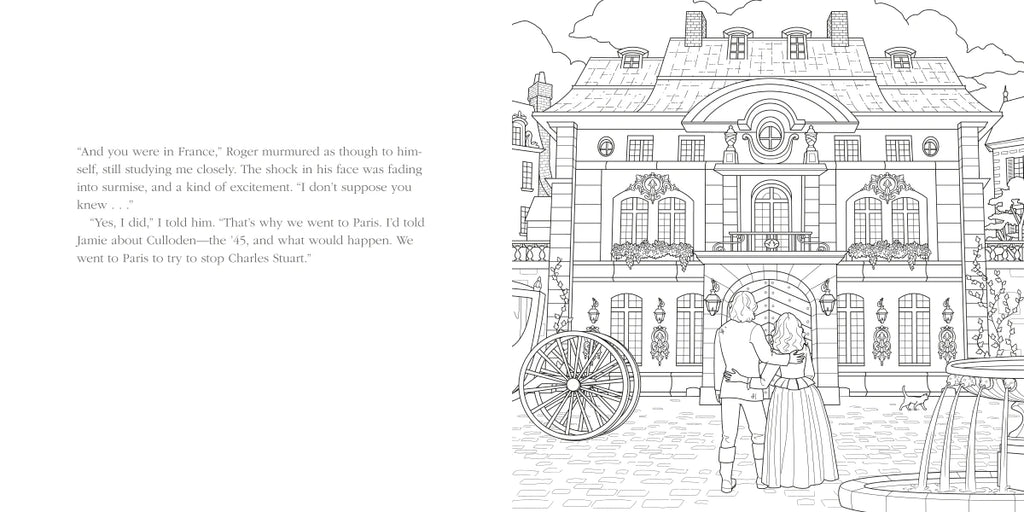 From the bustling market streets of Paris to the resplendent court of Versailles, through secret passageways into forbidden apothecaries and onto battlefields to fight for freedom, the colorful world of Claire Beauchamp Randall and Jamie Fraser is now yours to explore. Featuring gorgeous natural landscapes of Scotland and France, detailed drawings of royal court fashion, and heartwarming scenes from Jamie and Claire’s epic love story from renowned illustrators Ana Jaren, Ben Perini, Cat Willett, Matthew Land, Mélanie Delon, and Monika Roe, this official Outlander coloring book will welcome you back into the beloved series with open arms and plenty to drink.