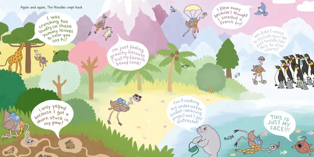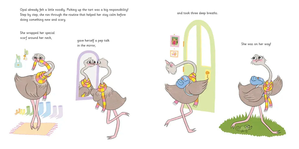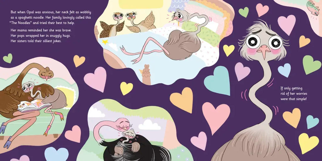 When Opal the ostrich is anxious, her neck feels as wobbly as a spaghetti noodle. Her family lovingly calls this “The Noodles,” and tries their best to help. But it’s not easy to calm down when you’re a worrier like Opal—especially when you’re worrying about somebody else’s opinion of you.