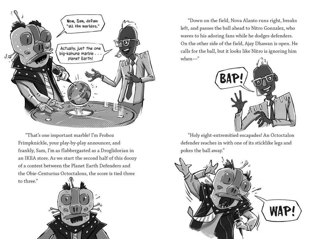 Told in a mixture of text and black-and-white illustrations, this is a laugh-out-loud series for any kid who loves soccer, science fiction, and friendship.