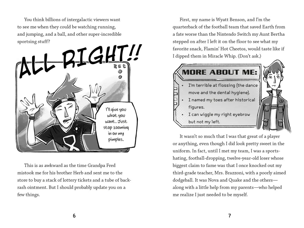 The Last Kids on Earth meets Space Jam in this hilarious illustrated series about soccer, aliens, and friendship. Welcome to the Quantum Interstellar Sports League, where humans and aliens play soccer for the fate of the Earth!