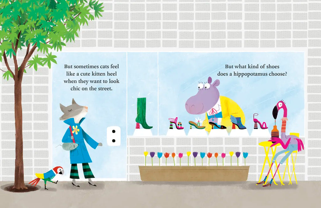 This gorgeously witty picture book will delight and entertain readers of all ages. Readers will love calling out the cats in smart ballet flats, the bears wearing boat shoes, donkeys in mules embellished with jewels, and many, many more. With stunning illustrations by Sebastien Braun, What Kind of Shoes Does a Hippopotamus Wear? will be a book destined to be picked up and read over and over again.