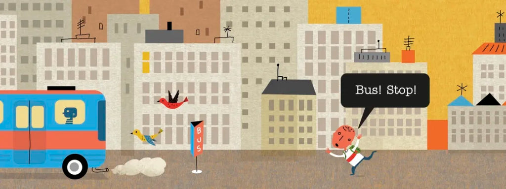 “Bus! Stop!” a boy yells, as his bus pulls away one early morning. He must wait for the next bus. The next one does NOT look like his bus at all. And neither does the next one, or the next. But these other buses look much more interesting than his bus. Should he try a different one?