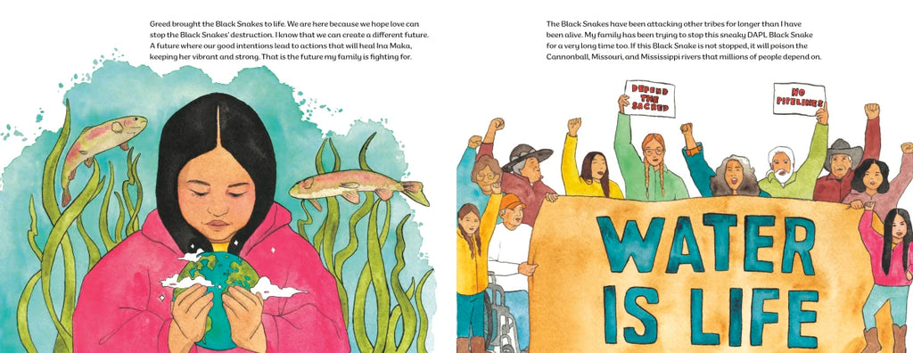 As Water Protectors gather to defend the water and protect the land against a black snake that threatens the rivers that millions of people depend on, a young girl looks to her Unci LaDonna and Lala Miles who are leading the way to the camp.