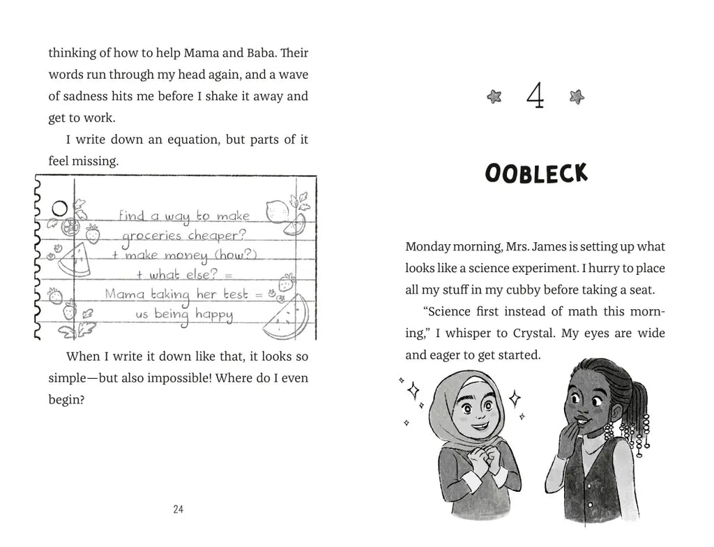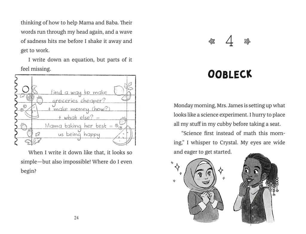 When Amina's family hits hard times, and her dad has been gone working more, she is determined to help her family out. Using her math skills, she develops a new formula.