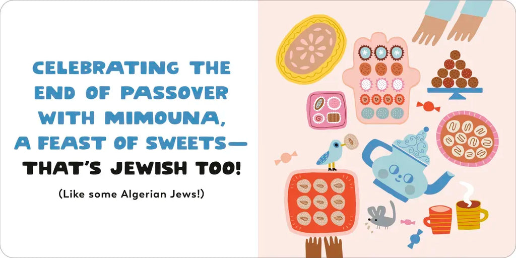 This modern and whimsical Jewish-themed board book series is the first of its kind to incorporate both Jewish traditions and Jewish culture, offering a truly representative and current depiction of Judaism. How Do You Jew? introduces readers to Jewish traditions from around the world, validating the varied experiences of Jewish readers and celebrating the global Jewish community.