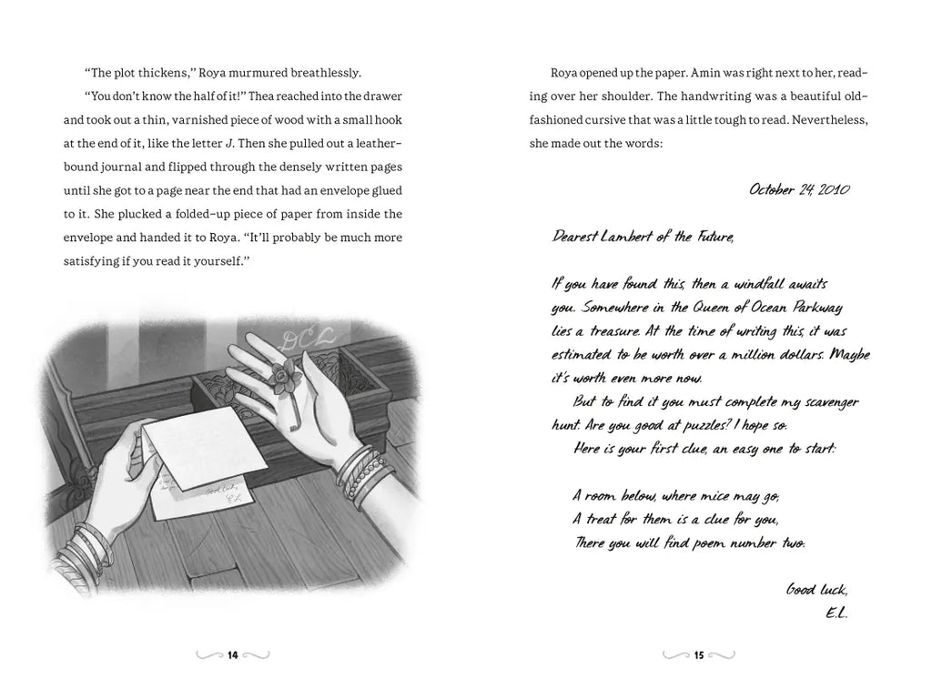 Roya and Amin’s mystery podcast has earned them a stellar reputation, but they never could have guessed that their latest case would send them on a wild scavenger hunt in their own building. Clue by clue, they search the building from roof to cellar (thanks to Roya's mom's master key). But just when a solution seems near, they realize an essential piece is missing—locked away where none of them can reach it. And unless Thea finds the courage to stand up to her family the treasure of Ocean Parkway may be lost forever. . .