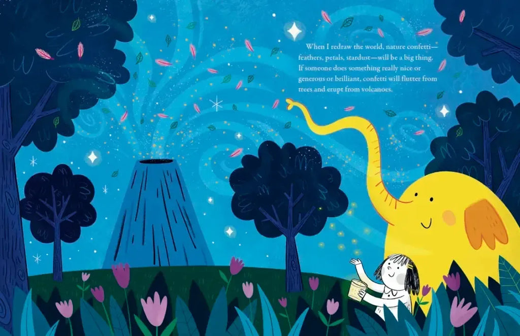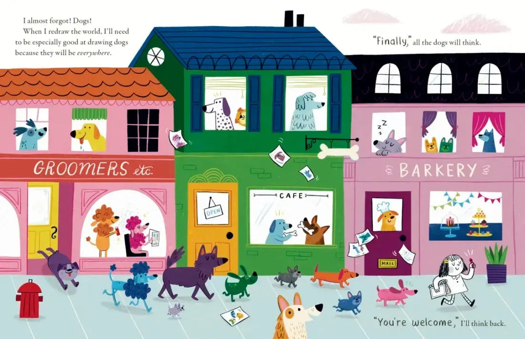 In pages bursting with joy, a young child imagines a world where everyone has a home, tree-house ice cream shops are a thing, and you can always find a kind elephant in case you need to reach something high. And when a dog does something great, tennis-ball confetti will immediately erupt--dogs everywhere will rejoice!