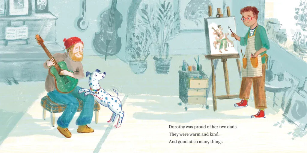 Meet Dorothy, a loving dog with two wonderful dads. Her life is filled with long walks, bubbly bath times, and splendid dinner parties. She takes pride in helping her dads with everything, ensuring their days are filled with fun.