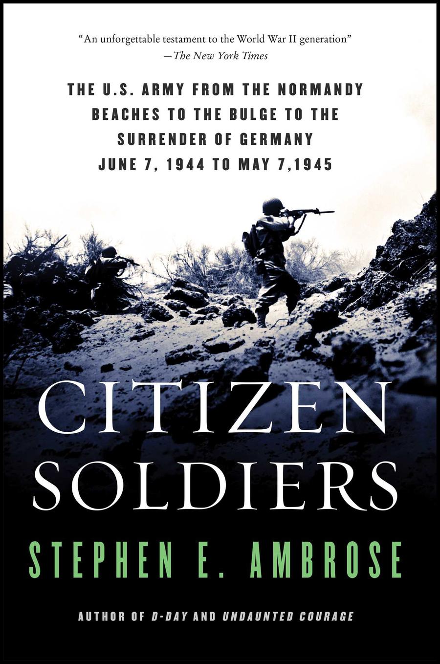 In this riveting account, historian Stephen E. Ambrose continues where he left off in his #1 bestseller D-Day. Citizen Soldiers opens at 0001 hours, June 7, 1944, on the Normandy beaches, and ends at 0245 hours, May 7, 1945, with the allied victory. It is biography of the US Army in the European Theater of Operations, and Ambrose again follows the individual characters of this noble, brutal, and tragic war. From the high command down to the ordinary soldier, Ambrose draws on hundreds of interviews to re-create the war experience with startling clarity and immediacy. From the hedgerows of Normandy to the overrunning of Germany, Ambrose tells the real story of World War II from the perspective of the men and women who fought it.