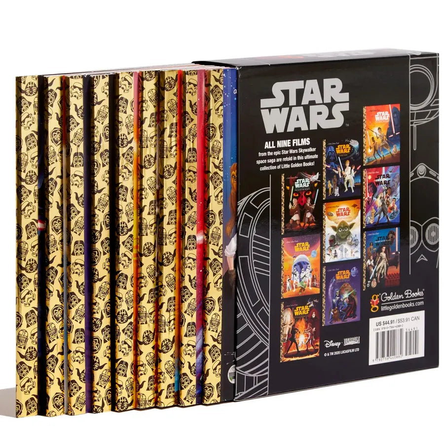 All nine films in the epic Star Wars Skywalker space saga--The Phantom Menace, Attack of the Clones, Revenge of the Sith, A New Hope, The Empire Strikes Back, Return of the Jedi, The Force Awakens, The Last Jedi, and The Rise of Skywalker--are retold in this Little Golden Book collection! Featuring stunning retro illustrations, this boxed set of nine Little Golden Books is perfect for Star Wars fans and Little Golden Book collectors of all ages!