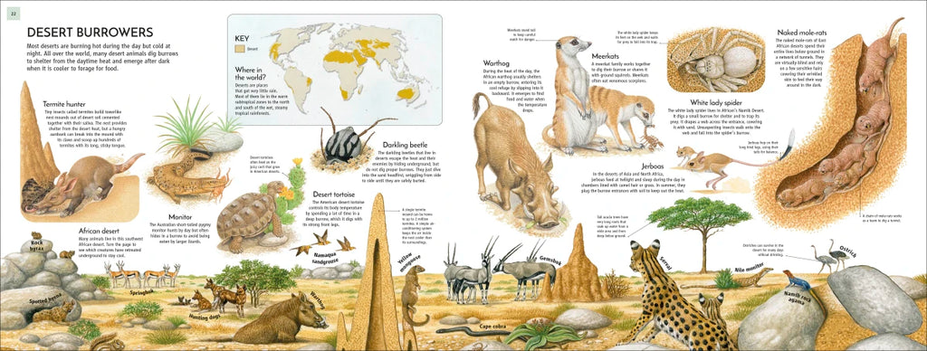 Life Underground takes children on an illustrated journey into the world’s most amazing underground habitats, from warm Arctic warrens to sandy desert dens. Explore the different communities of animals and plants that live under the Earth, from the succulent soil of an Australian forest to the hard ground at the icy north. Find out how animals and plants are adapted to their environment and how they interact with their surroundings and each other.