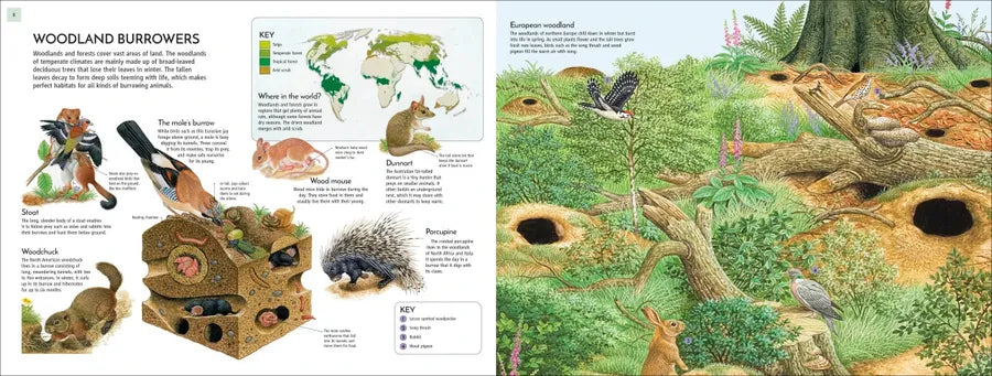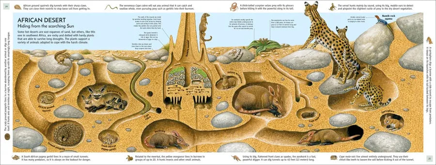 - Beautifully detailed panoramic artworks show each underground scene teeming with life, with burrowing animals placed around the edge of the page for readers to find in the illustration.