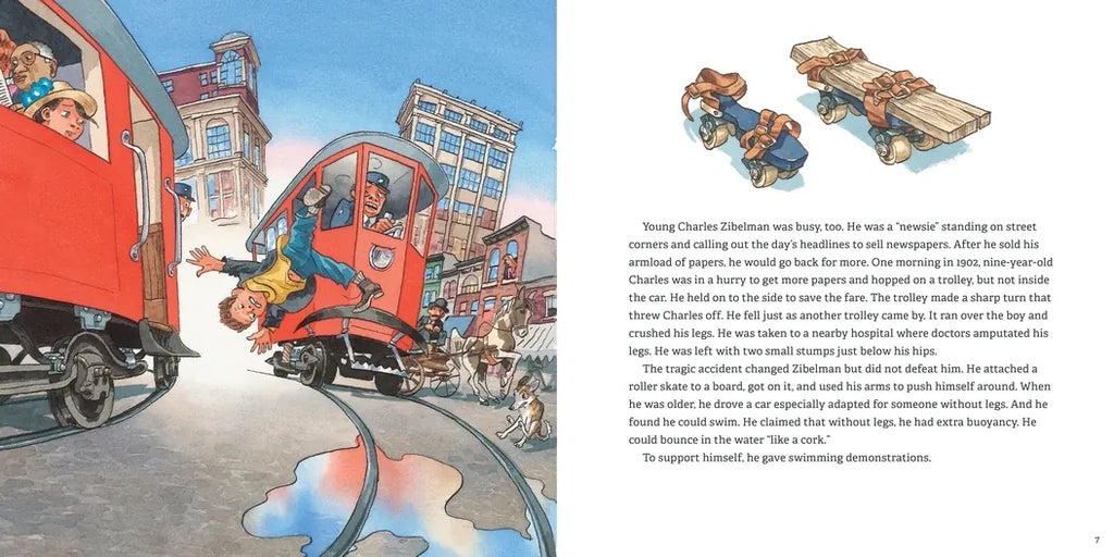 Meet Charles “Zimmy” Zibelman, the legless athlete who swam from Albany to New York City, in this nonfiction picture book from bestselling author David A. Adler.