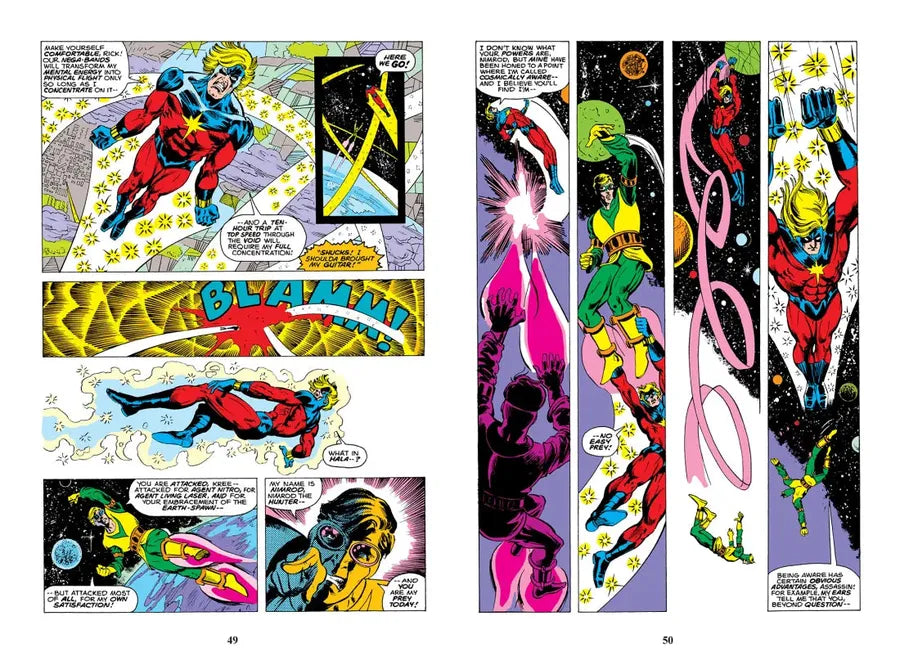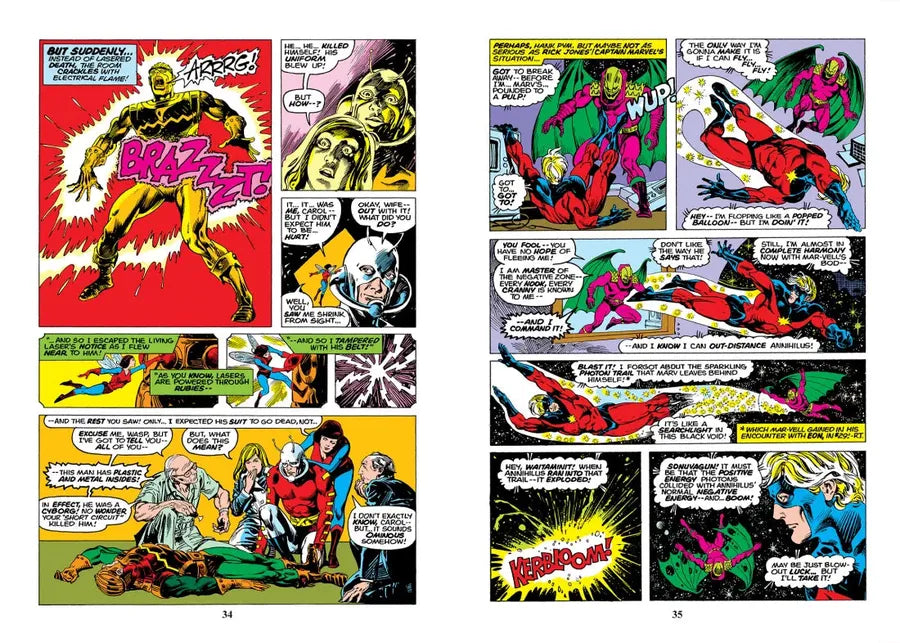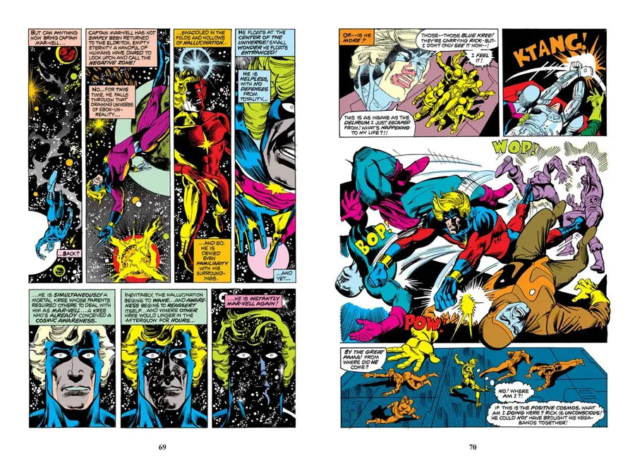 Welcome to the next level of cosmic consciousness with the adventures of Captain Marvel! From Earth to the Moon to the Watcher's homeworld and into the Negative Zone, these galaxy-spanning stories set the tone for Marvel epics. Bonded to Rick Jones by the Nega-Bands, Captain Marvel defends his adopted planet against the Kree and their mad quest for genetic superiority and galactic empire. Then, in a deadly plan set in motion by Thanos' death, the massive computer I.S.A.A.C. takes over an entire world! This once-in-a-lifetime Omnibus also features massive battles with Drax the Destroyer, the bizarre Lunatic Legion and, of course, Jim Starlin's legendary graphic novel, "The Death of Captain Marvel."