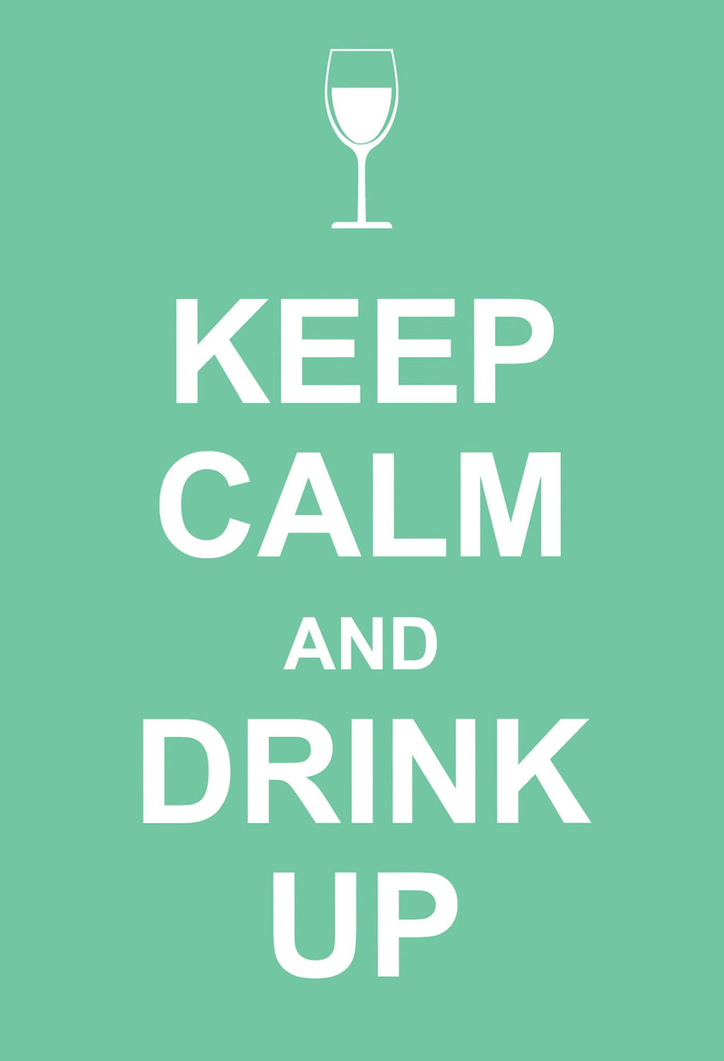 "In victory, you deserve champagne; in defeat, you need it," stated Napoleon Bonaparte. Inspired by the iconic World War II poster "Keep Calm and Carry On," Keep Calm and Drink Up is a gentle riff on the classic British war campaign.
