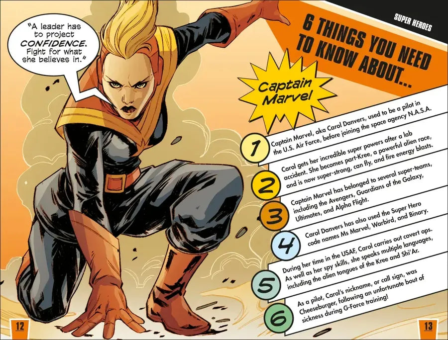 This Marvel fact book takes the reader on an action-packed journey to learn all about their favorite Marvel Super Heroes and villains, including some fan-favorites such as Captain America, Spider-Man, The Avengers and more.