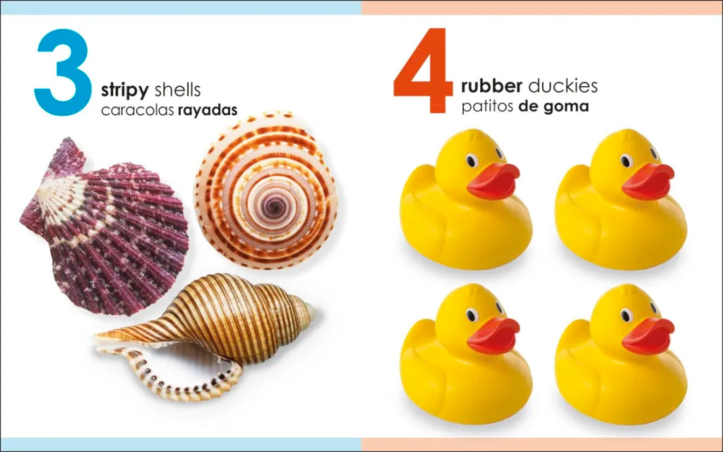 Este libro para bebés en español e inglés, My First Bilingual 123, enseña a los niños a: