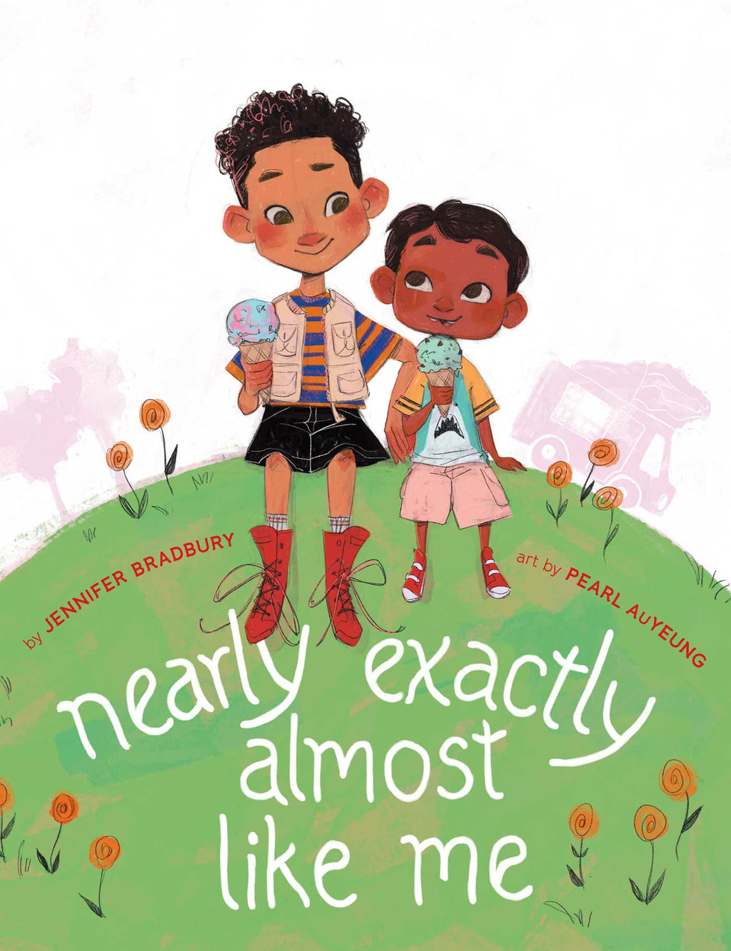 When they hear the singsong tune of an ice cream truck, two brothers race to get in line! Big brother beats little brother and holds their spot. But when little brother catches up, another kid challenges him joining his brother in line: no cutting! Everyone knows that cutting doesn’t count when you’re siblings, but the kid doesn’t believe they can be brothers when they don’t look anything alike.