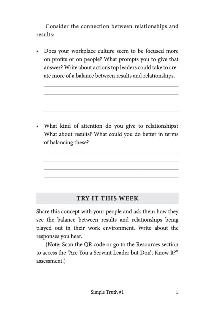 With so much of today’s workforce feeling disengaged from the work they do, it’s critical for leaders to move away from self-serving methods and embrace servant leadership to put their followers’ needs before their own. And by journaling alongside servant leadership principles, you will be able to turn the common sense behind these simple truths into common practice for you and your organization.