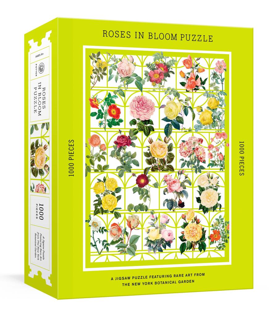 A glorious 1000-piece jigsaw puzzle featuring botanical art of roses in bloom from the renowned archives of the New York Botanical Garden.