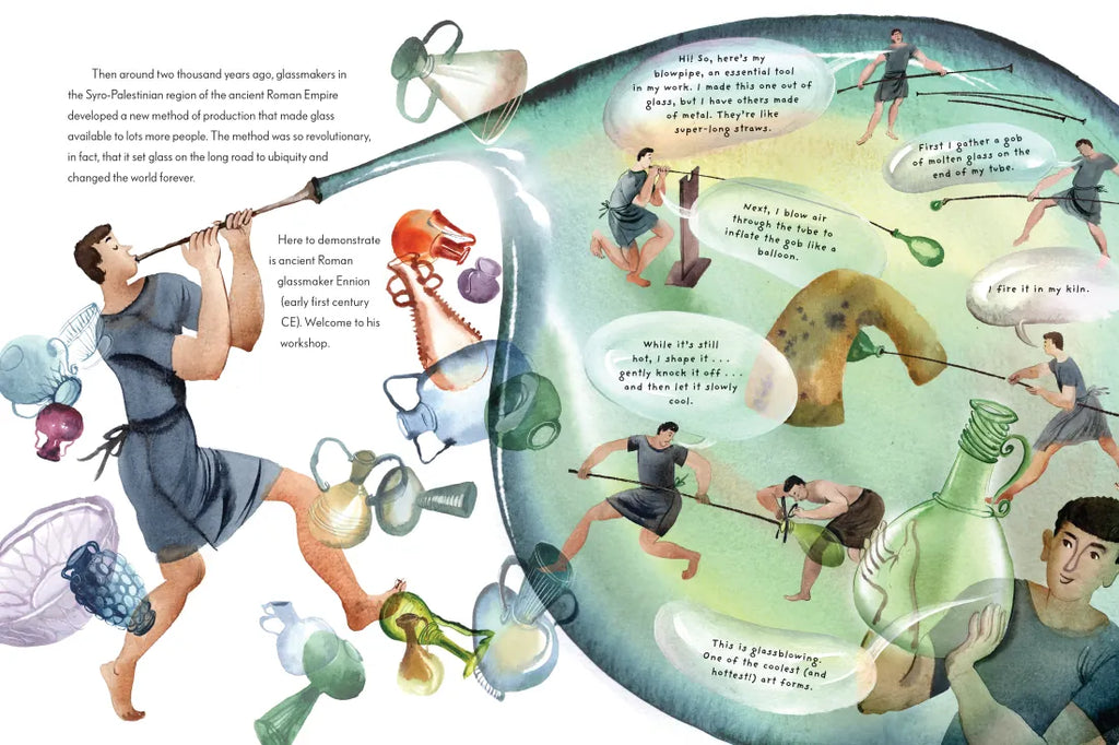 Meteoric collisions, volcanic eruptions, lightning strikes. Three catastrophes, all capable of producing glass—the stuff we use to protect us from the elements, send images, store energy, aid with everyday tasks, and make medical and scientific progress possible. With the help of human ingenuity, glass has evolved from its lumpy natural origins to a refined wonder that helps humankind see into the farthest reaches of outer space or the smallest particles of life on Earth. Glass is all around us and is one of the most versatile—and sparkling—wonders of the material world, still changing the way we build, the way we think, the way we see. Enlivened with speech bubbles and full of memorable facts, this thoroughly engaging intro to the history and STEAM applications of glass is fortified with a bibliography in the back matter.