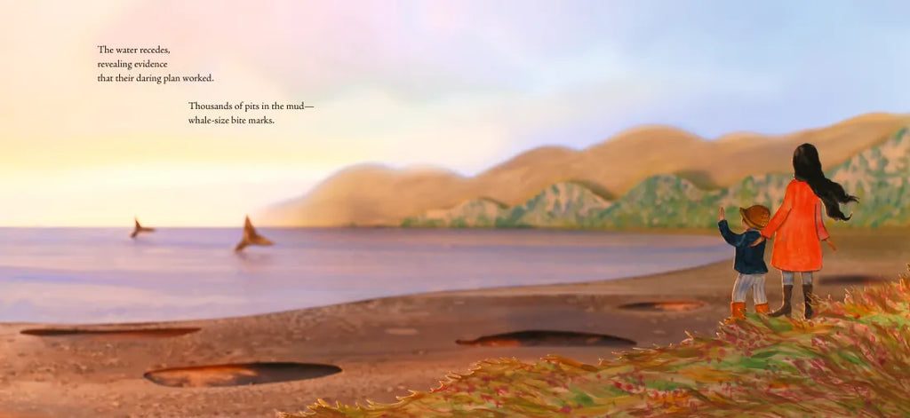 In February, some twenty thousand gray whales set off from Baja California on a long, hard journey north, toward food and survival. Hungry and thin, they push on week after week, past California, Oregon, and Washington to the tip of that state, where twelve of them peel off and make an eastward turn into the Salish Sea. There they will wait in the deep for the tide to rise, only to swim into the dangerously shallow waters of a mudflat, hurriedly plowing the bottom for food before the water recedes once more. Will their daring be rewarded? Will they survive to join their fellow whales in the Bering and Chukchi Seas? Elly MacKay’s fluid, saturated artwork sets the stage for the whales’ exciting journey, complementing Nora Nickum’s lyrical, factual narrative. Back matter takes a deeper dive into the intriguing habits of gray whales and offers resources for curious readers.