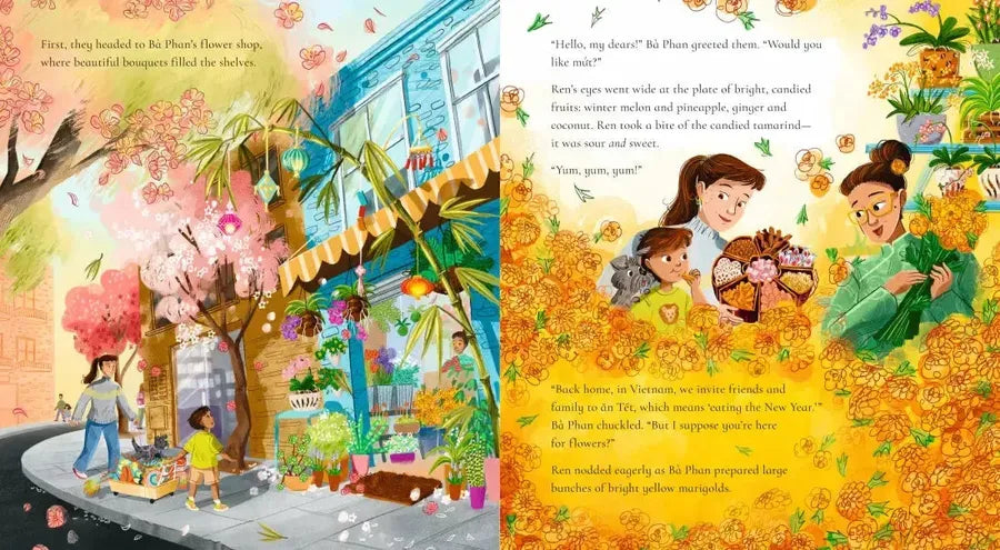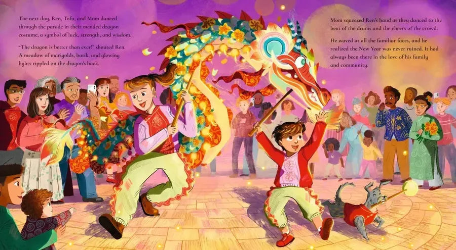 Ren and his family are preparing for the joyous New Year celebrations—cooking a feast and getting their home spick and span. When Ren accidentally ruins the dragon costume his mother was going to wear in the New Year parade, he turns to his neighbors for help. As they lend their assistance, Ren also learns about Lunar New Year traditions from around the world. Soon they are all celebrating and feasting together in this community-centered story from chef and food writer Lara Lee and richly illustrated by Natelle Quek.