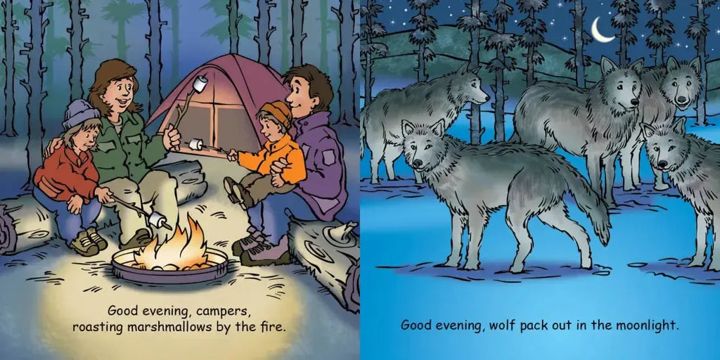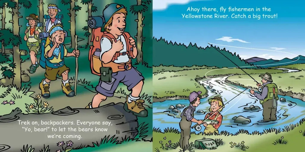 Good Night Yellowstone explores Yellowstone Lake, Morning Glory Pool, American bison, Yellowstone River, Old Faithful, grizzly bears, the Grand Canyon of Yellowstone, Mammoth Hot Springs, Firehole River, park rangers, Paint Pot Trail, campers, and wolves. A wonderful introduction to world's first national park, this child-friendly guide to Yellowstone explores scenic sights and iconic landmarks. Don't forget the camera!