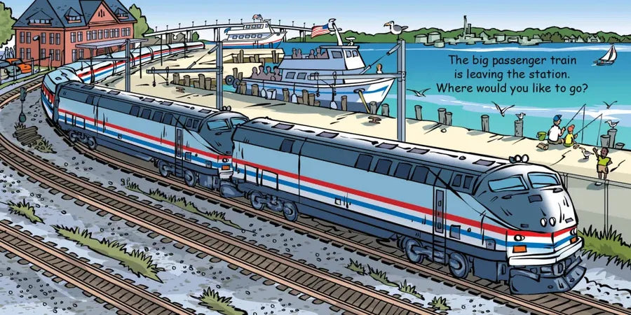 Good Night Trains highlights steam locomotives, freight trains, box cars, cog railroads, mine trains, subways, monorails, sleeper trains, high-speed trains, holiday trains, snow-plow trains, Christmas trains, and more. All aboard! Come ride the rails and explore the fascinating world of trains while your child sits comfortably in a passenger seat. This fun and educational board book leaves no train track unturned.