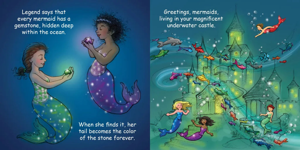 The perfect adventure for all ages, ride with dolphins, swim with seahorses, dress up with seashells and so much more! This charming board book explores all aspects of mermaid life from blowing bubbles to finding your very own mermaid tail color. Give the gift of underwater exploration all while guiding little ones to drift into a sea of magical dreams.