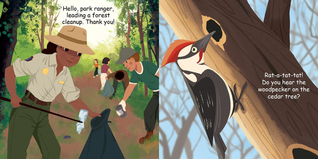 Good Night Forest explores maple trees, oak trees, evergreens, and redwood trees, along with hiking trails, fall foliage, snowy forests, pine cones, animals, black bears, squirrels, woodpecker, deer, and more! Put your hiking boots on and get ready to experience the seasons of the forest in this nature-filled bedtime story.