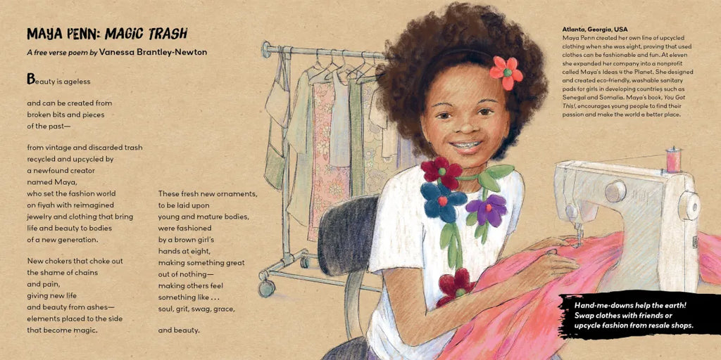 Climate change impacts everyone, but the future belongs to young people. No World Too Big celebrates twelve young activists and three activist groups on front lines of the climate crisis who have planted trees in Uganda, protected water in Canada, reduced school-bus climate footprint in Indonesia, invented alternate power sources in Ohio, and more. Fourteen poems by Vanessa Brantley-Newton, David Bowles, Rajani LaRocca, Renée LaTulippe, Heidi E. Y. Stemple, and others honor activists from all over the world and the United States. Additional text goes into detail about each activist's life and how readers can get involved.