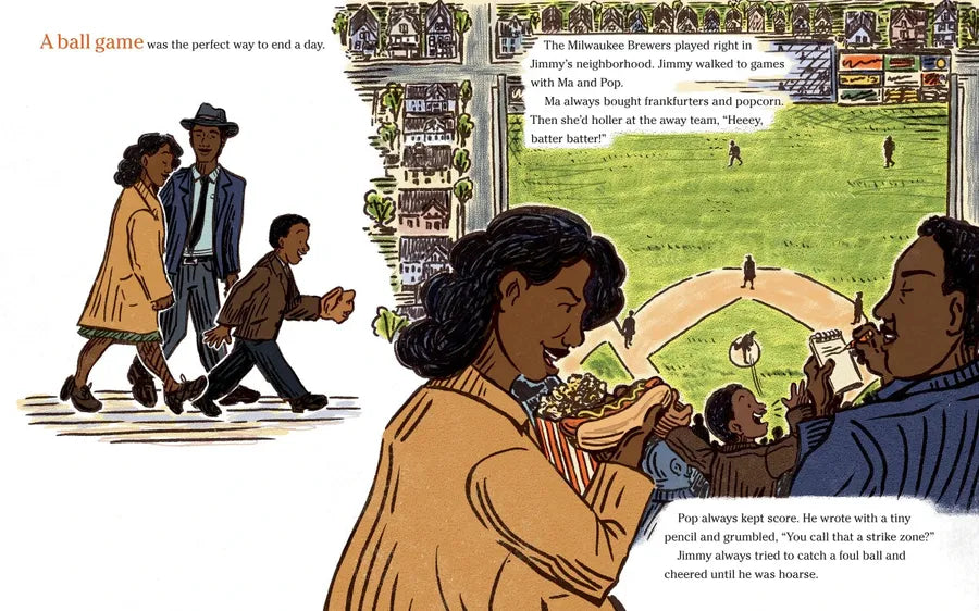 Jimmy’s family loves going to Milwaukee Brewers games together, but all that changes during World War II when Pop goes overseas to fight and Ma starts working nights in a factory. Then Jimmy has a chance meeting with the team’s owner and helps inspire a new idea: morning baseball games!