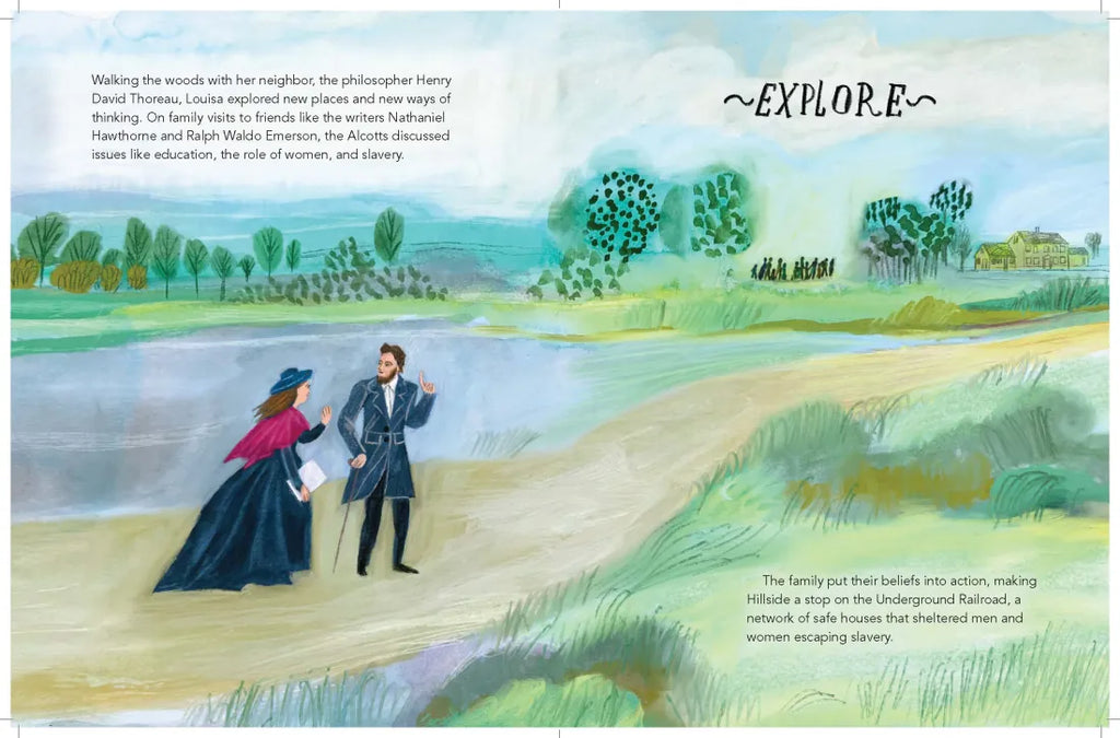 Born into the middle of a spirited, creative group of sisters, Louisa was always up for exploration, play, dreaming, and creating—the traits that would one day make her a writer. Even when times were hard, Louisa’s family held each other close and persevered. So when Louisa dared to write a novel, she wrote about the thing that mattered most to her—family! The four Alcott sisters became the four March sisters in the smashing hit novel Little Women.