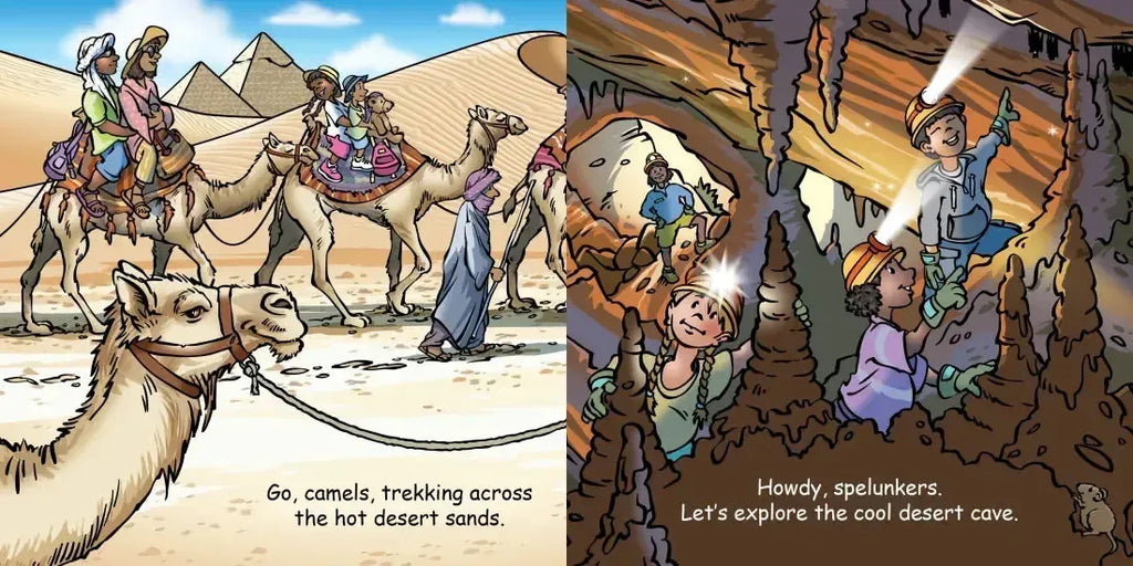Young readers will put on their hats as they journey through the hot sands of the desert in search of fascinating creatures and natural wonders, including cactus, desert wildflowers, canyons, camels, gila monsters, jackrabbits and roadrunners, desert tortoise, dinosaur bones, caves, and more.