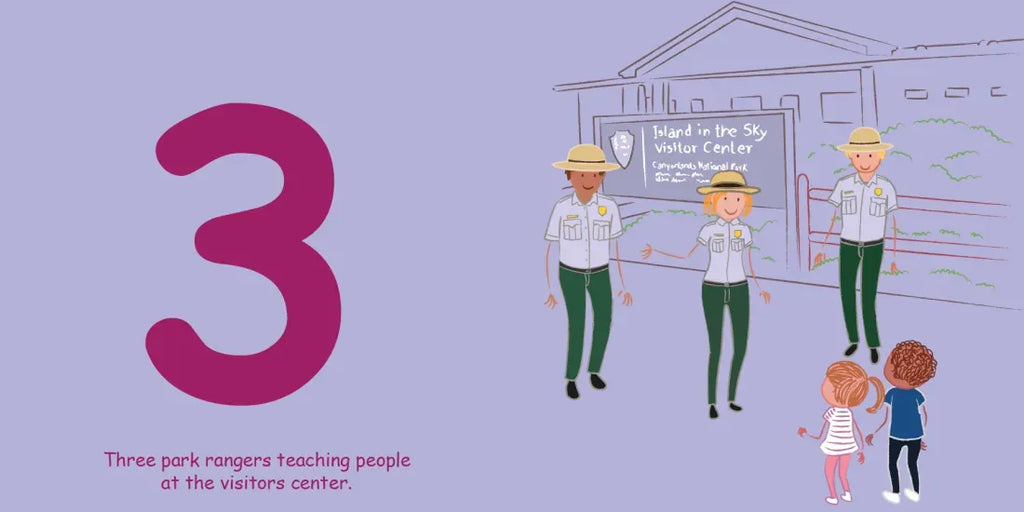 Little counters will squeal with delight as they count their way through Canyonlands National Park, discovering famous natural attractions and historic landmarks including Grand View Point, Mesa Arch, Green River Overlook, hiking, wildlife, and more.