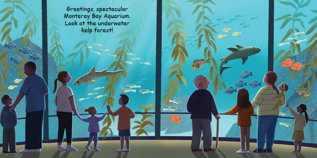 This adorable board book tours little ones around the fabulous region of Monterey Bay. Young readers will visit the area’s top attractions and historic landmarks including Old Fisherman's Wharf, Pebble Beach, Monterey Bay Aquarium, Dennis the Menace Playground, Cannery Row, Carmel-by-the-Sea, Big Sur, whale watching, sea otters, and more.