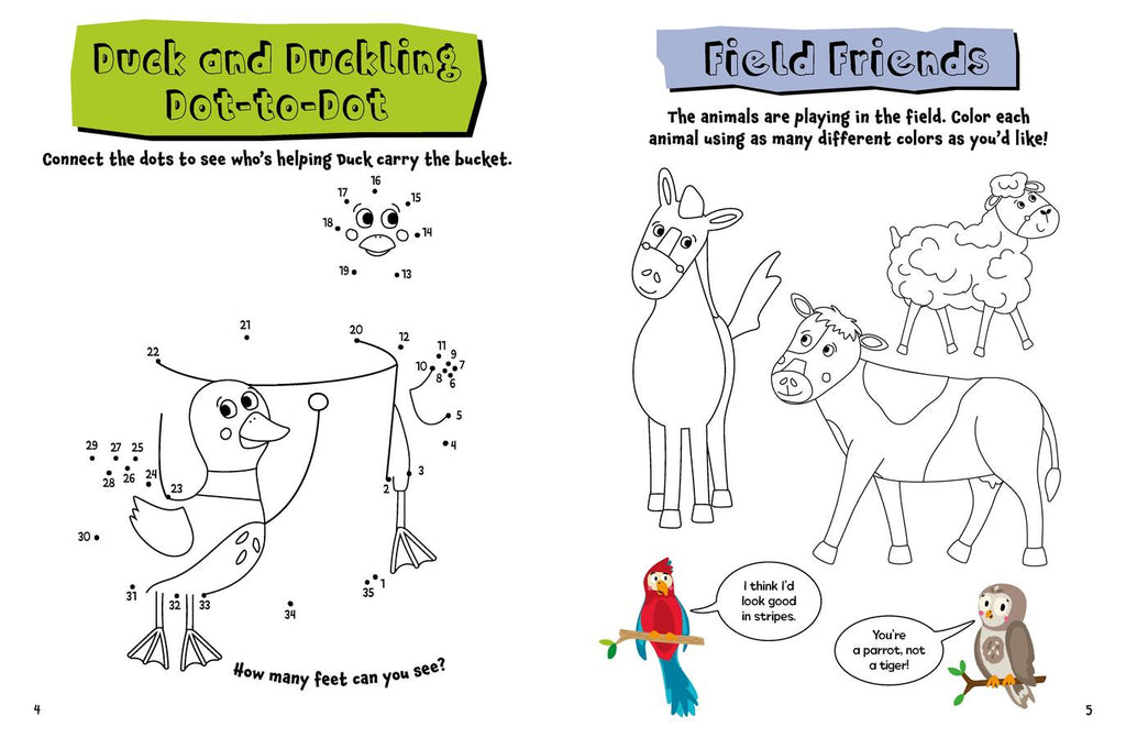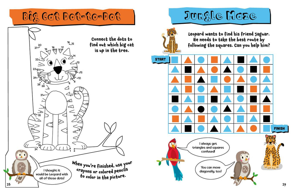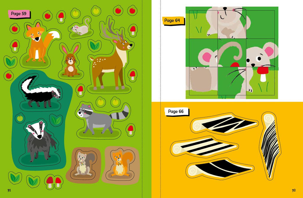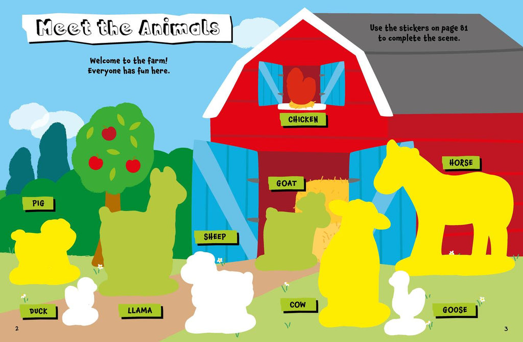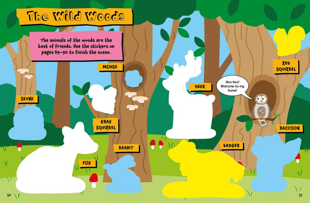 Children will love to learn about the animals of the forest, farm, jungle and more with this engaging sticker activity book! Young readers can complete mazes and coloring pages, connect the dots, unscramble words, find the differences between pictures, and more as they learn the names of a number of animals and where they live. Includes interactive prompts throughout, an answer key, and 350 stickers to use to complete the activities.