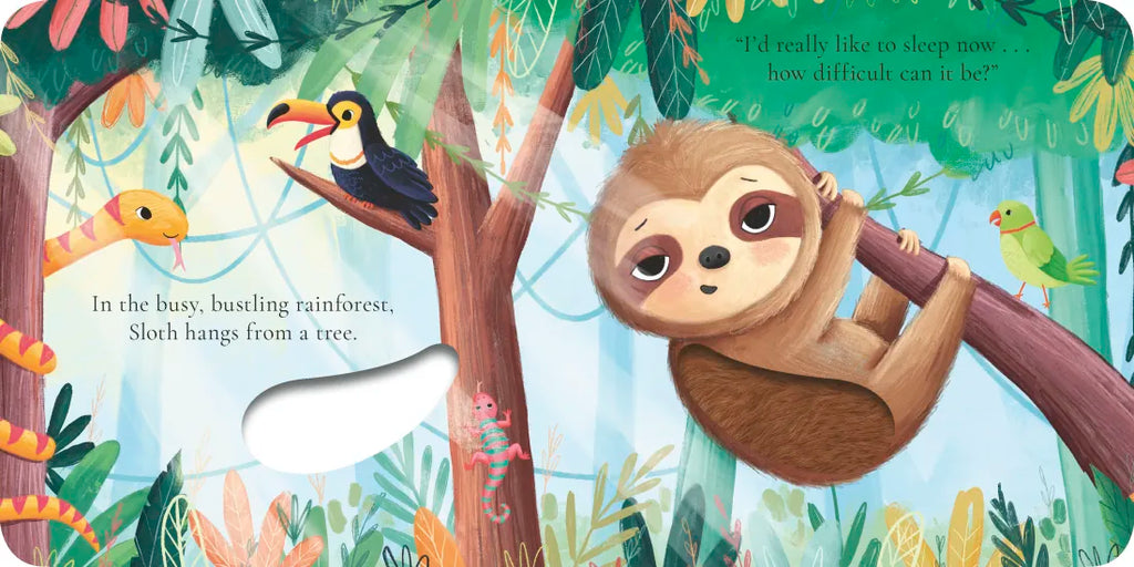 Poor sleepy Sloth just wants to take a nap, but there’s too much noise from his friends in the busy rain forest! Will the soothing chirrup of the tree frog help him fall asleep?