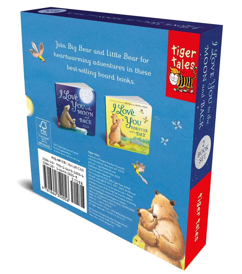 This attractive boxed set for children ages 2-5 features Tiger Tales' best-selling board book I Love You to the Moon and Back and I Love You Forever and a Day from the talented team of author Amelia Hepworth and illustrator Tim Warnes. The gender-neutral text in each book includes sweet, uplifting messages of love between parent and child all during the day and night. Packaged in a sturdy slipcase that's ideal for gift-giving!