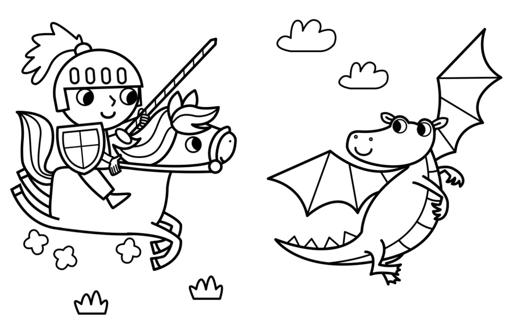 This busy coloring book is full of magical friends! Each page features a picture with bold outlines to help young artists improve their coloring skills. Children will meet many new friends as they bring each picture to life. They can ride on a unicorn; meet a narwhal and a sea star; chase a friendly dragon; discover a mermaid and treasure at the bottom of the ocean; share sweet treats with fairies and elves; and make friends with the fish in the ocean.