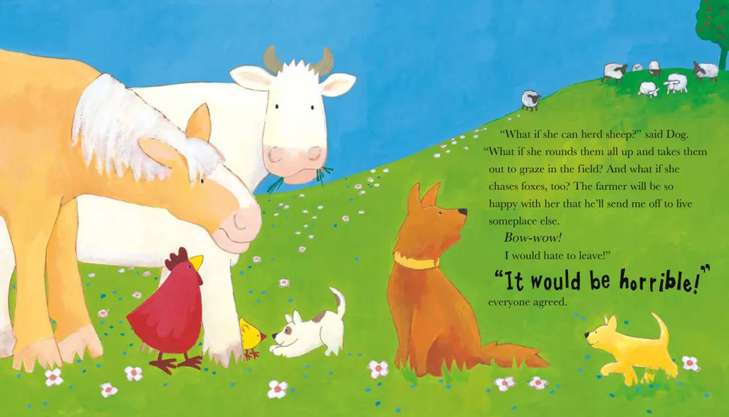 A new animal, Kangaroo, is arriving at Buttercup Farm and the other animals are worried that Kangaroo will take away their jobs.